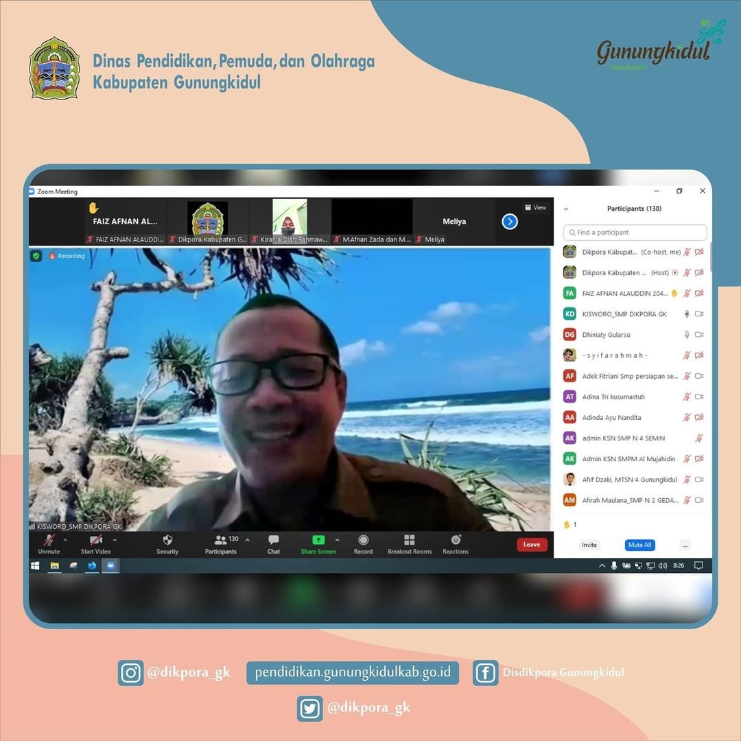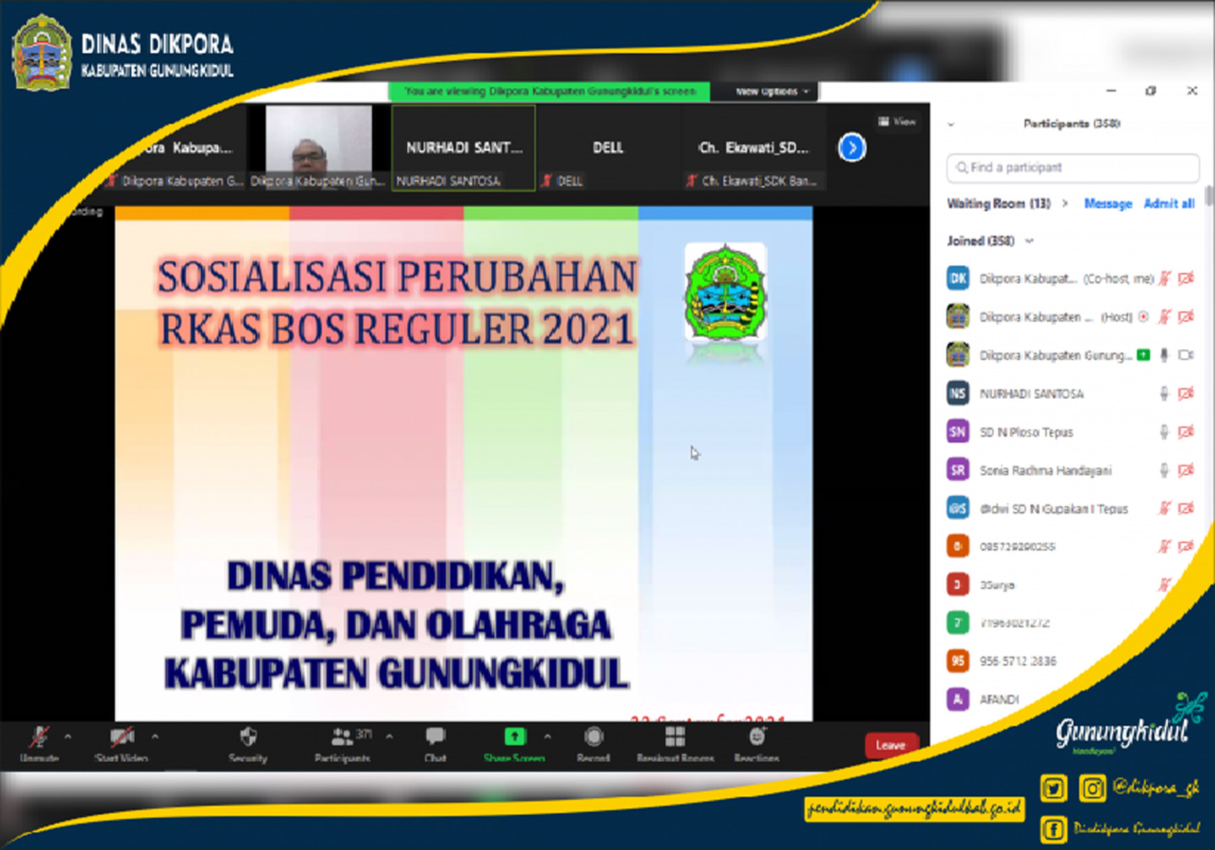 Dinas Pendidikan Kabupaten Gunungkidul melalui Subbag Perencanaan melakukan Sosialisasi Perubahan Anggaran Dana BOS menggunakan ARKAS Tahun 2022 melalui media Zoom